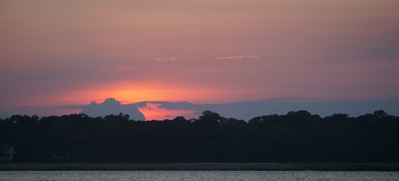 Tuesday, departed Coinjock at 0715. Looks like a nice day. Currituck Sound was, thankfully, calm. Now comes the fresh water: trees right in the water, osprey nests, and huge turquoise dragonflys. Arrived at Atlantic Yacht Basin (mm 8) at 1:00. Walked to lunch at the Old Courthouse; Kroger’s food shopping and then Tuesday Morning. First store of this type since COVID hit.