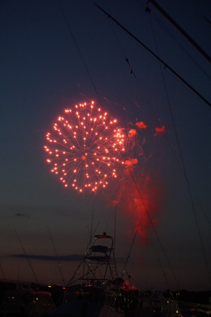Friday, departed Deltaville at 0800. Hot but quite nice. Lots of groups of dolphins, and a dead small shark-all in 10 minutes. Long but easy ride to Solomons. Arrived at Calvert/Washburn’s Boatyard by 5:06. Larry had predicted 5:00. We have arrived! Lots of jellyfish! Yep….it’s the Chesapeake. Another journey completed.